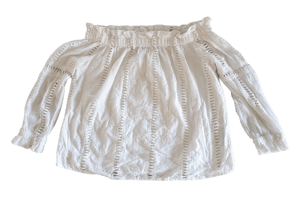I love doing the rounds of op-shops to see what I can find, and I’m often surprised about the great quality items I come across. One of my latest is a “Forever New” off-shoulder top – cute in the plain white but even better with some colour added.